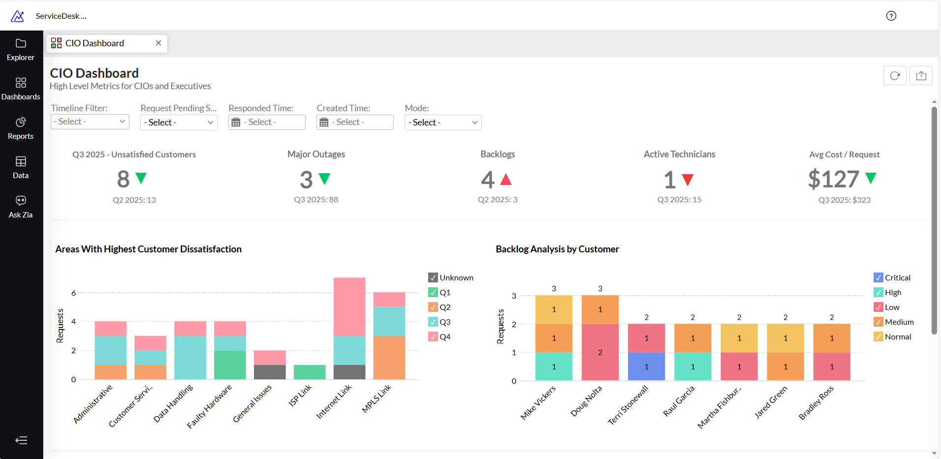Dashboard spolehlivosti service desku