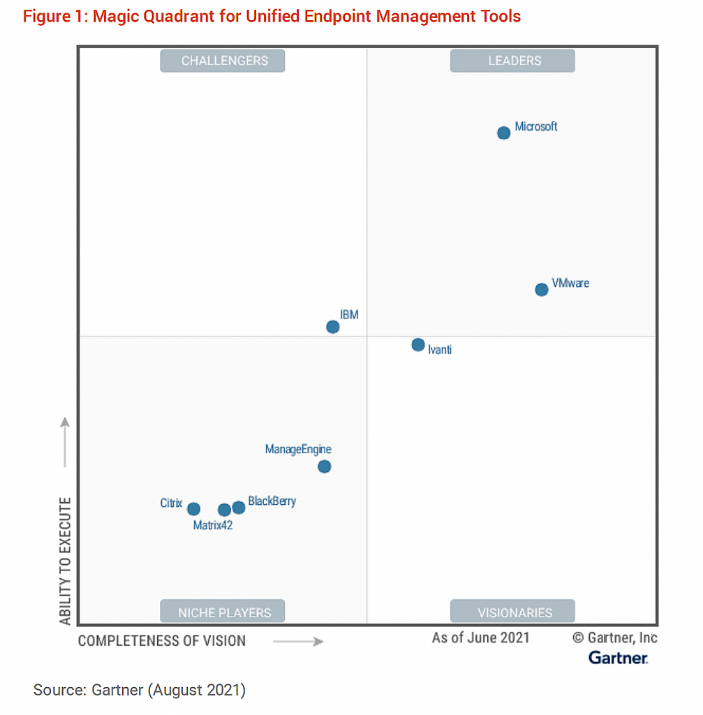 Desktop Central stále v Gartner Magic Quadrant pro rok 2021 mezi nástroji UEM