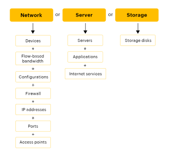 Abychom Vám to usnadnili, kategorizovali jsme zařízení do tří typů: Síťová zařízení, servery a úložná zařízení: