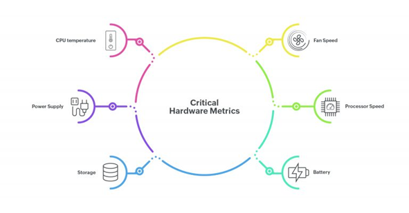 Hardwarový monitoring je aplikace, která slouží k monitorování stavu a dostupnosti hardwarových komponent prostřednictvím dat shromážděných z vestavěných snímačů. Pomocí monitorování výkonu hardwaru můžete mít pod kontrolou kritické metriky výkonu hardwaru, včetně otáček ventilátoru, teploty procesoru, napětí, baterie, paměti a místa na disku.