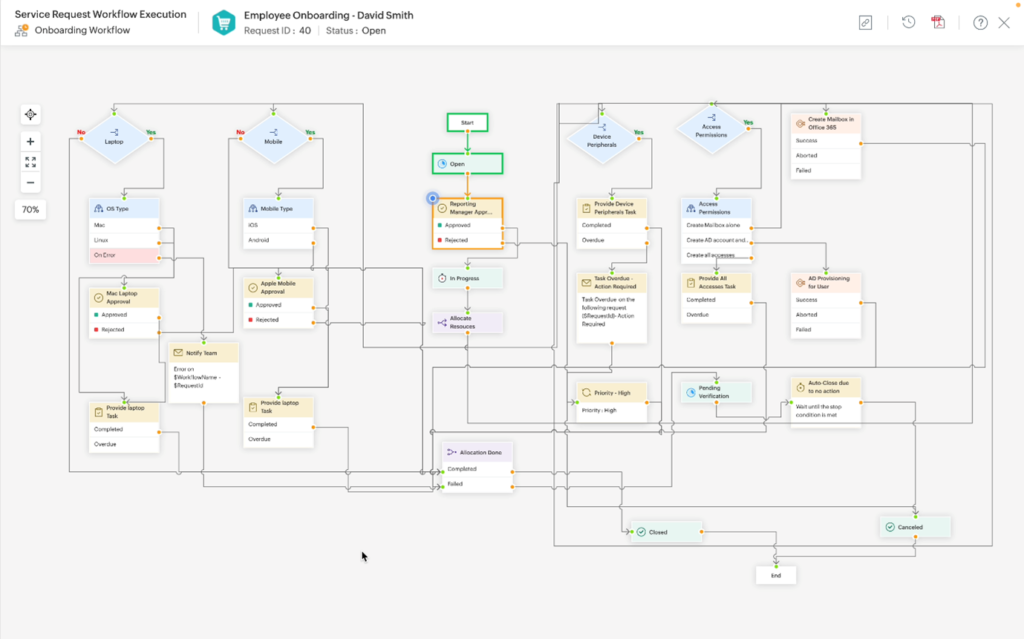 A ServiceDesk Plus Cloud legújabb frissítése jelentősen kibővítette munkafolyamat-automatizálási képességeit, lefedve az incidenseket, szolgáltatási kéréseket, problémákat és az eszközkezelést. Ez a holisztikus megközelítés lehetővé teszi az IT csapatok számára, hogy átfogó munkafolyamatokat hozzanak létre, amelyek az IT szolgáltatásmenedzsment különböző aspektusait kezelik, biztosítva, hogy egyetlen terület se maradjon figyelmen kívül.