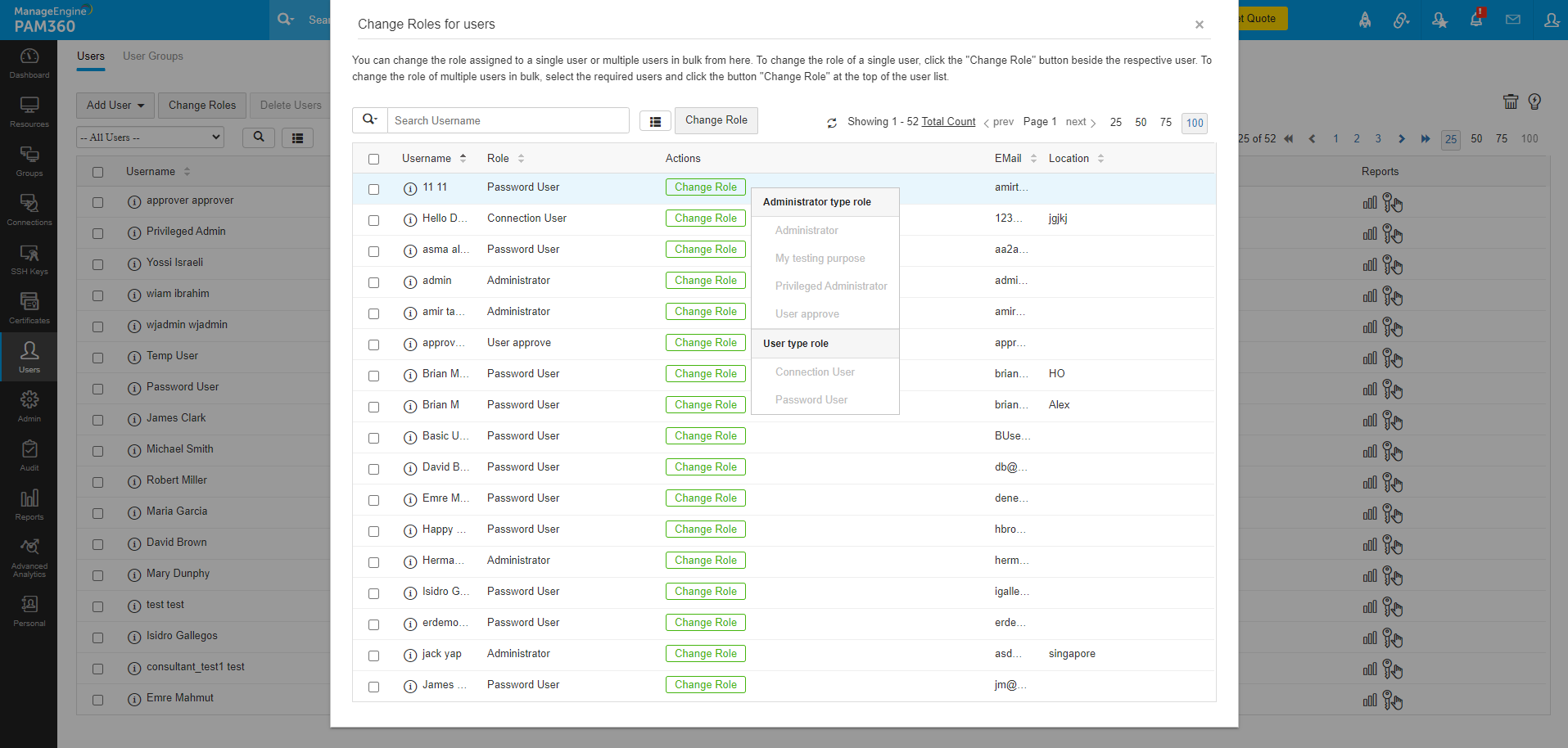 A PAM360 végigkíséri a privilegizált fiókokat, amely a privilegizált hozzáférés kezelésének alapja. A PAM360 segítségével az adminisztrátorok központi konzolon felügyelhetik az összes privilegizált fiókot, biztosítva, hogy minden privilegizált felhasználó hozzáférése szigorúan ellenőrzött és monitorozott legyen. A rendszer lehetővé teszi a fiókok, hitelesítő adatok és hozzáférési jogok konszolidációját, egyesített nézetet biztosítva, ami létfontosságú a biztonság és a szabályozás fenntartásához.