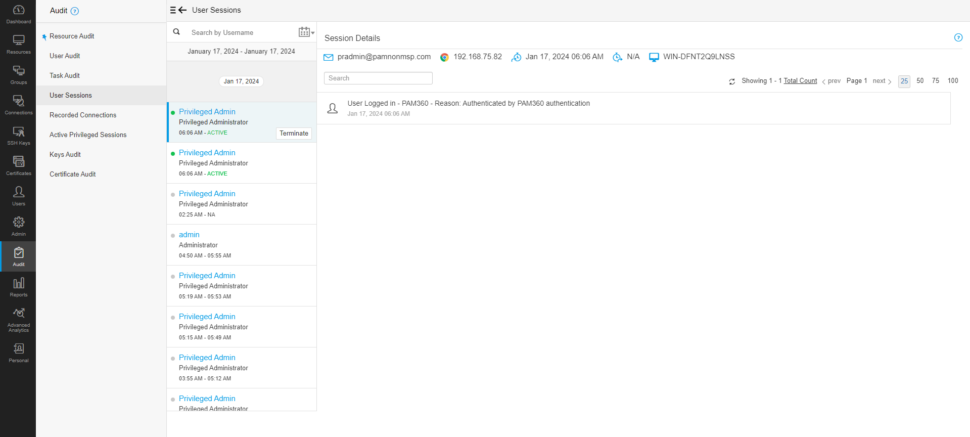 A privilegizált munkamenetek kezelése és monitorozása a PAM kritikus szempontja. A PAM360 ezen a területen kiemelkedik speciális munkamenetkezelési funkcióival, amelyek magukban foglalják a munkamenetek valós idejű monitorozását, rögzítésüket az auditokhoz, valamint a munkamenet-árnyékolás és lezárás képességeit. Ezek a eszközök nélkülözhetetlenek annak biztosításához, hogy minden privilegizált műveletet rögzítsenek, és azokat ellenőrizni lehessen esetleges biztonsági megszegések szempontjából.