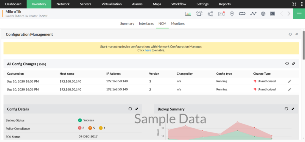 - Konfigurációk biztonsági mentése: Automatikusan biztonsági mentéseket készít az eszközök konfigurációiról, csökkentve az adatvesztés kockázatát eszközhiba esetén.