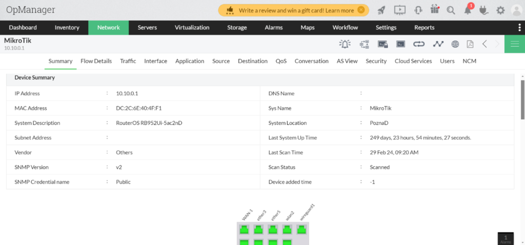 Az OpManager Plus egyszerű módot kínál a hálózati eszközök konfigurálására, és egy könnyen érthető grafikus felületet biztosít, amely lehetővé teszi, hogy megértsd az eszközeid működését egyetlen konzolon belül.