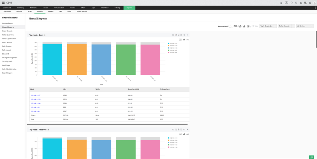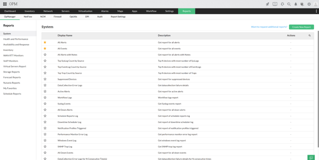 Az OpManager Plus jól fejlett jelentéskészítő modullal rendelkezik, amely lehetővé teszi, hogy bármilyen információt megnézzen a környezetben. A rendszer lehetővé teszi saját, személyre szabott jelentések készítését is. Arra is lehetőség van, hogy a jelentéseket megfelelő embereknek küldjék el további kivizsgálásra, hogy naprakészek legyenek az informatikai környezet állapotáról.