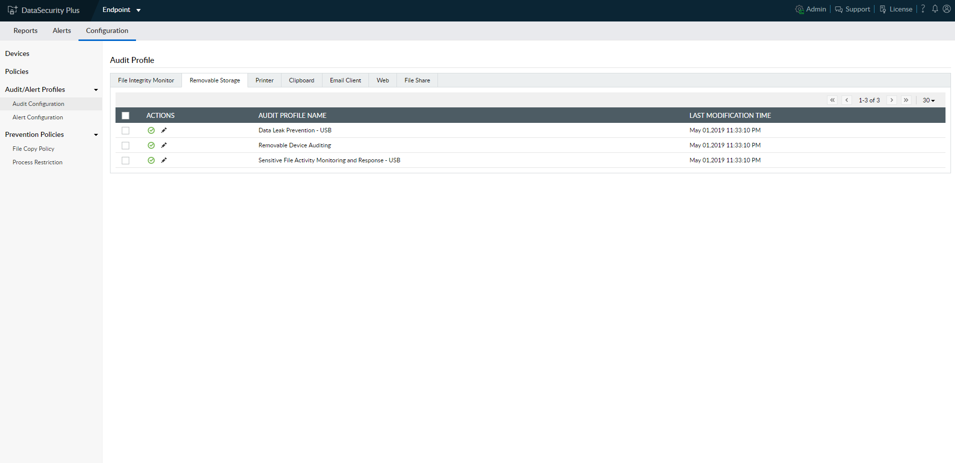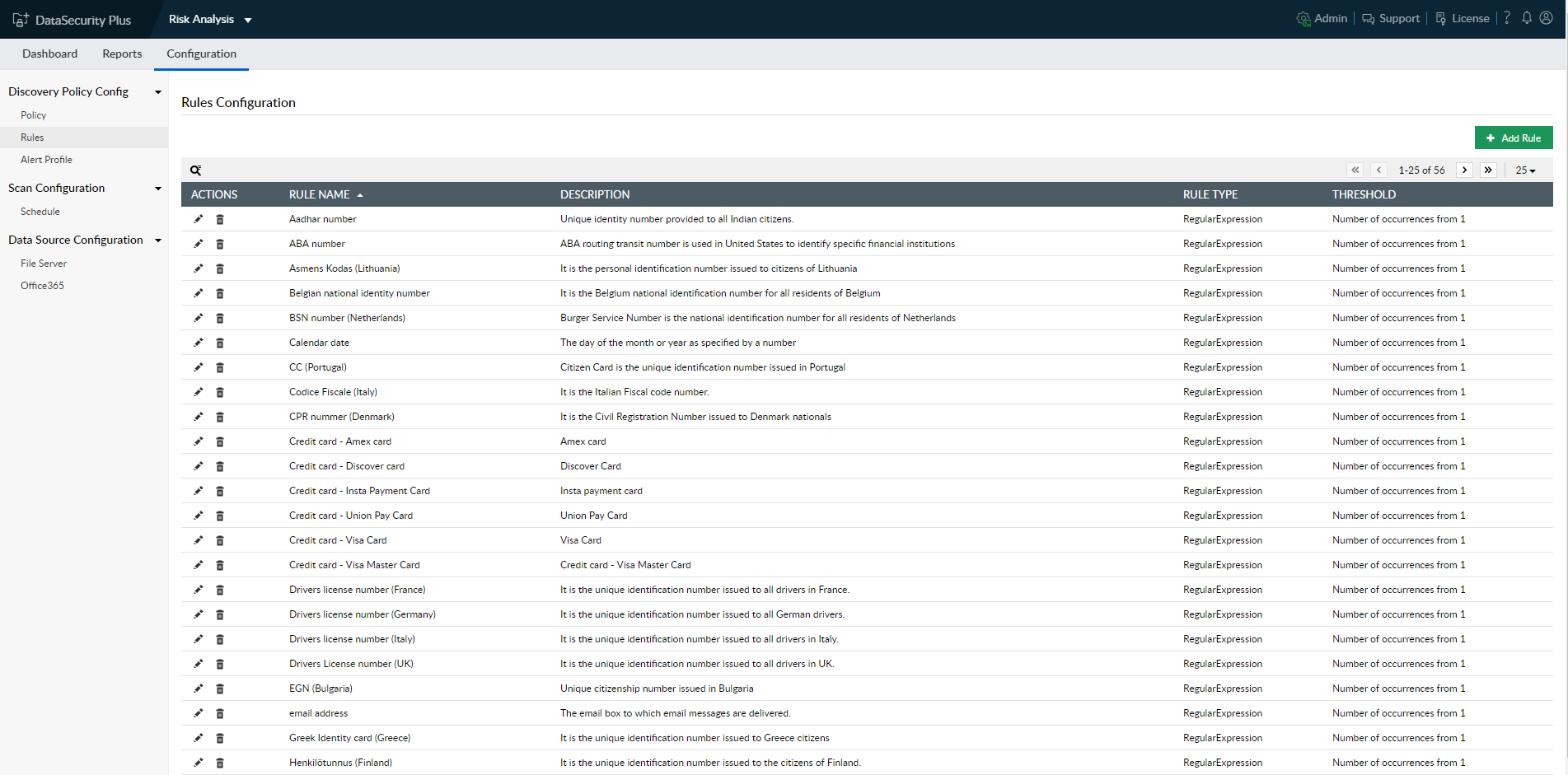 Az eszköz beépített jelentéseket tartalmaz, amelyek lehetővé teszik, hogy bármilyen információt könnyen beszerezzen, például a környezet aktuális állapotáról. A DataSecurity Plus lehetővé teszi a fájlok létrehozásának, módosításának és törlésének ellenőrzését is. A rendszer kiterjeszti a lehetőségeket azáltal, hogy a hálózati megosztásokon érzékeny adatokat, például személyi azonosító vagy személyi igazolvány számot keres. Ennek a tudásnak köszönhetően képesek vagyunk blokkolni az elemek külső terminálok által adathordozókra történő másolásának műveleteit, például: USB, webböngésző, e-mail. A DataSecurity Plus teljes ellenőrzést biztosít a környezet felett.