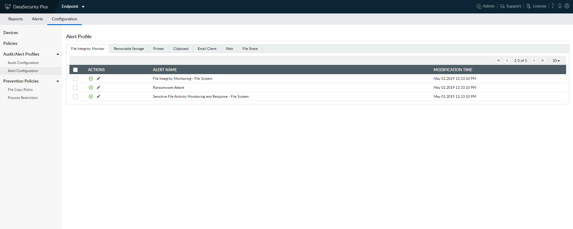 A DataSecurity Plus rendelkezik egy modullal, amely tájékoztatja az adminisztrátort arról, hogy a felhasználó megpróbál adatokat letölteni vagy USB-eszközre másolni. A technikusnak küldött üzenet tartalmaz információkat arról, hogy melyik felhasználótól és melyik számítógépről vagy IP-címről szerette volna letölteni a fájlokat/információkat.