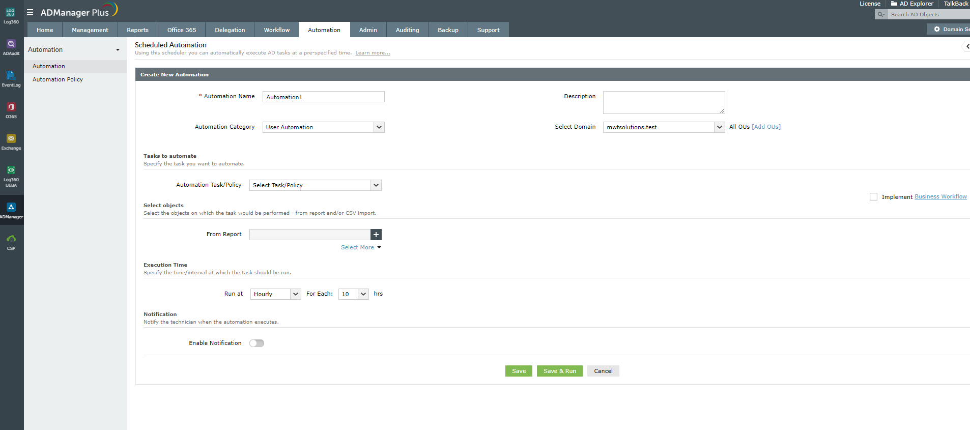 Ez a szolgáltatás lehetővé teszi a monoton feladatok automatizálását és az egymást követő műveletek konfigurálását, ami időt takarít meg az adminisztrátoroknak. Az automatizálások lehetővé teszik időszakos műveletek végrehajtását, például a jelszó visszaállítását konfigurált jelentés alapján, majd a felhasználó blokkolását vagy eltávolítását hosszú inaktivitás esetén.