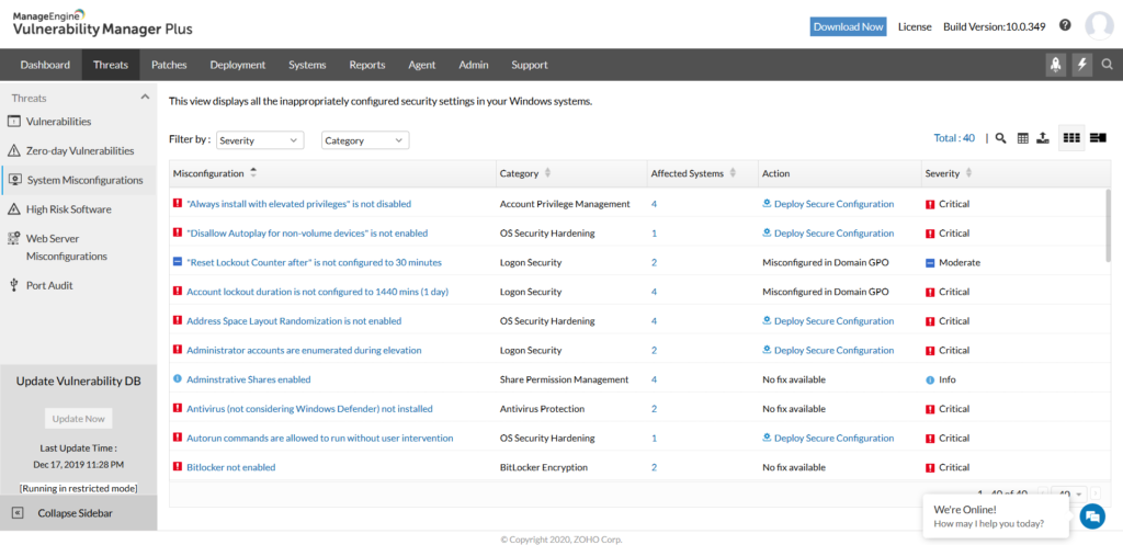 A rendszer tájékoztat bennünket a kritikus sebezhetőségekről, amelyek például a harmadik felektől beszerzett korszerű biztonsági intézkedések hiányához, valamint alacsonyabb prioritású sebezhetőségekhez vezetnek, amelyeknek köszönhetően optimálisan megtervezhetjük az infrastruktúra fenntartásával kapcsolatos munkát.