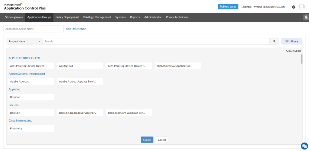A kiválasztás a megfelelő szoftver kijelölésével történik, amely hozzáadódik a megfelelő listához. A rendszer lehetővé teszi több készlet készítését intuitív szűrés lehetőségével és az adatok exportálását PDF, CSV vagy XLSX formátumba. A szürke lista egy átmeneti terület azoknak az alkalmazásoknak, amelyek nincsenek a rendszer egyik vagy másik csoportjához hozzárendelve.
