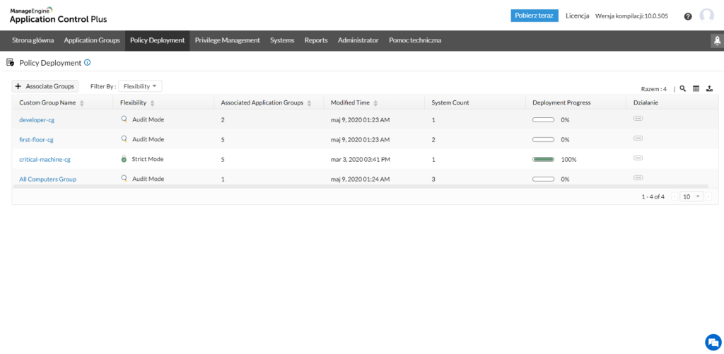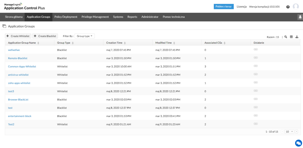 A csoportok lehetővé teszik, hogy hozzáférhető módon válasszon szoftvert, amely egészében megfelelő korlátozásokhoz rendelhető. Ennek köszönhetően nem kell az egyes alkalmazásokhoz külön meghatároznia a biztonsági házirendeket. Az így létrehozott fájlok szükség szerint módosíthatók vagy törölhetők. A rendszer megmutatja az adott csoport létrehozásának idejét és utolsó módosításának dátumát is.