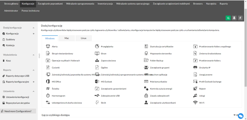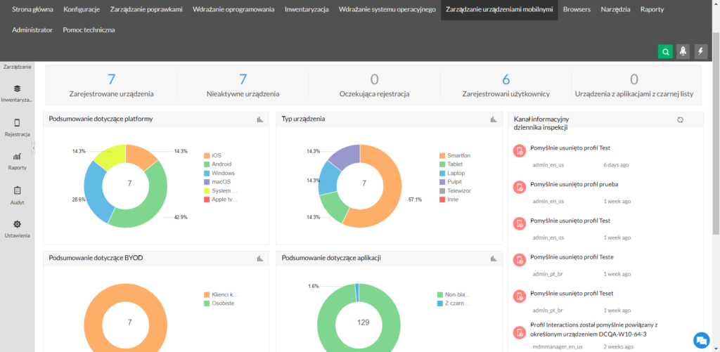 A nagyon sok eszközt támogató rendszer lehetővé teszi azok intuitív kiválasztását a szervezetben elfogadott szabályok szerint. Ha a vállalatnak számos részlege vagy különálló vállalata van, mindegyikük külön biztonsági irányelvvel és a használt szoftverrel rendelkezhet. Az alkalmazást egyszerre sok eszközre telepítik, a végrehajtott műveletek aktuális állapotával kapcsolatos információkkal együtt.