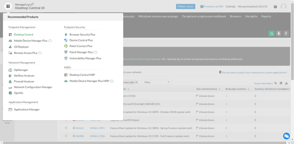 Integráció más ManageEngine alkalmazásokkal a lehető legrészletesebb adatok kinyerése érdekében, kiterjesztve a megoldási lehetőségeket, pl. bejelentések létrehozási lehetőségének köszönhetően.